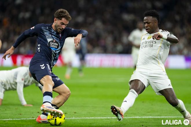 上半场的剩余时间,皇马多次威胁塞尔塔的球门,拉杜状态出色,连续化解险情。上半场补时阶段,维尼修斯的射门,也被拉杜扑出。